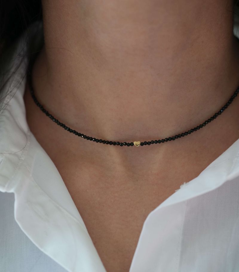 MATERIAL: argint 925 (placat aur 18K 0,4 microni), spinel natural. Colierul este insirat pe fir de otel inoxidabil.