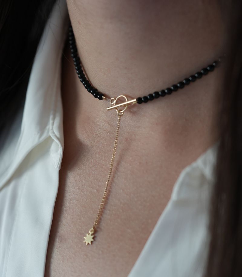 MATERIAL DE BAZA: argint 925, onix. Lantul are 5 cm.