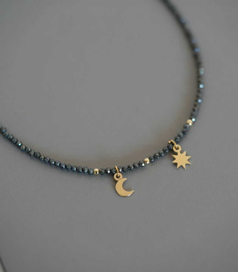 ARGINT 925 Colier pirita soare si luna