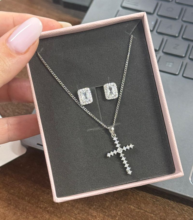 Set format din: 1 pereche cercei, 1 colier, 1 cutie. Punga nu este inclusa in pret.