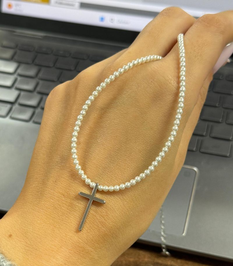 MATERIAL: inchizatoare si pandantiv din otel inoxidabil (argintie), perle scoica vopsite.