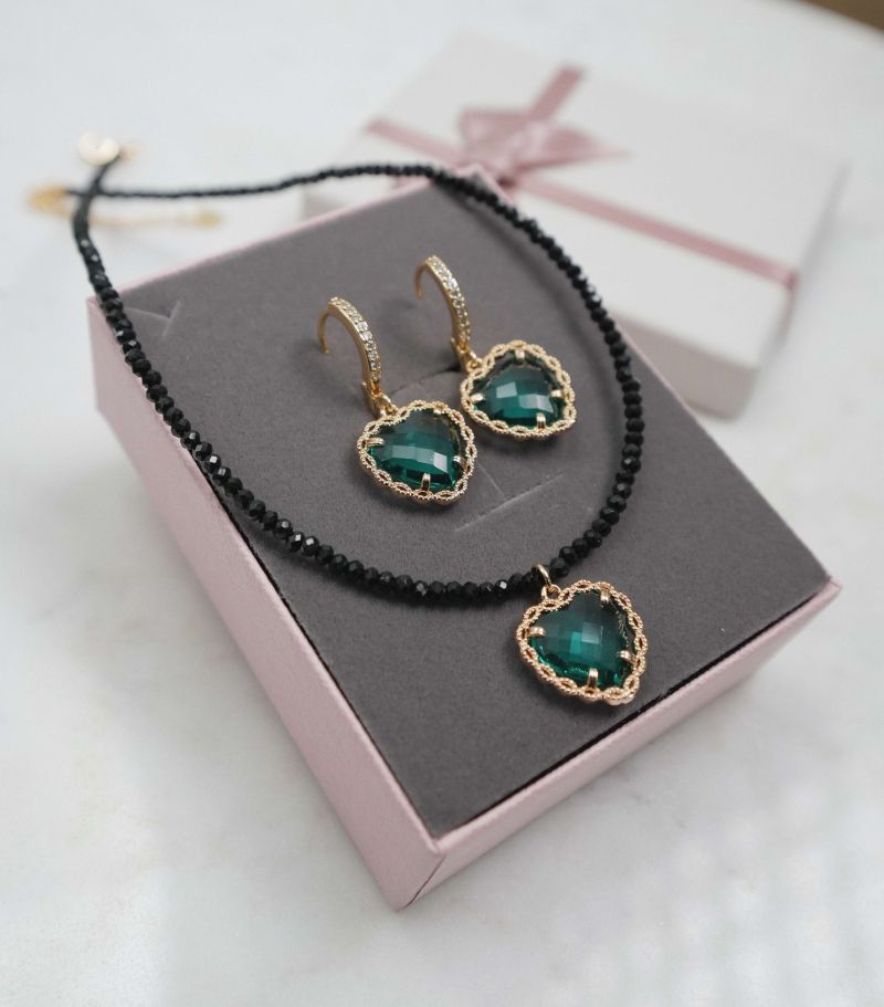 Set format din: 1 pereche cercei, 1 colier, 1 cutie. Punga nu este inclusa in pret.