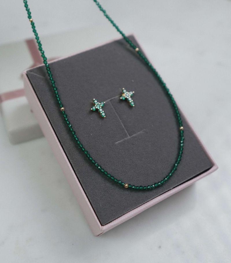 Set format din: 1 pereche cercei, 1 colier, 1 cutie. Punga nu este inclusa in pret.