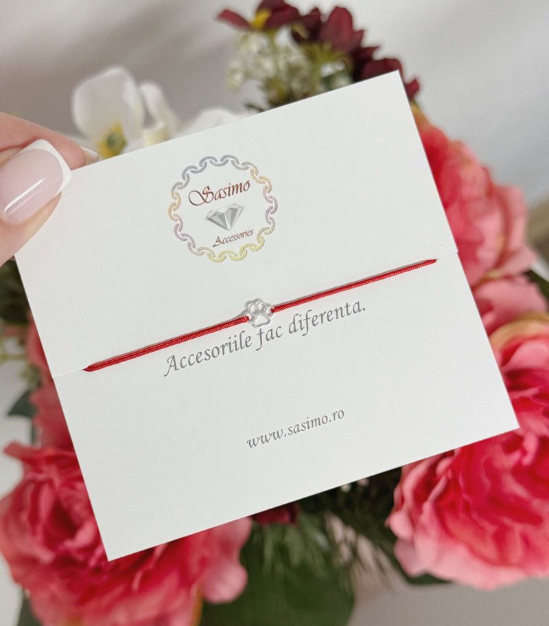 ARGINT 925 - Bratara snur rosu labuta