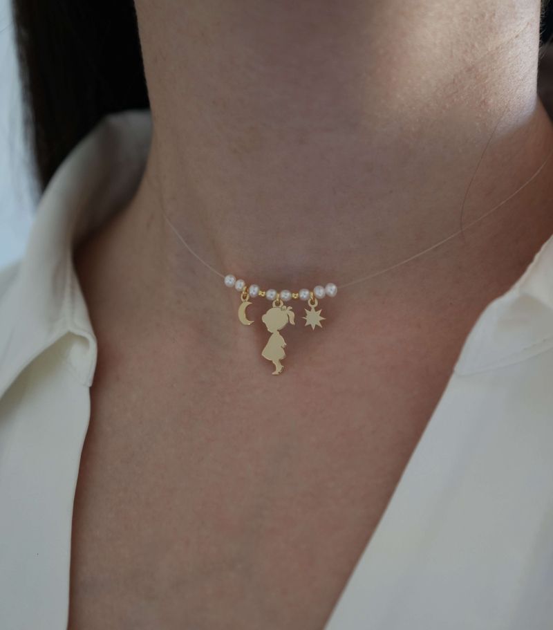ARGINT 925 Colier soare, luna si fetita