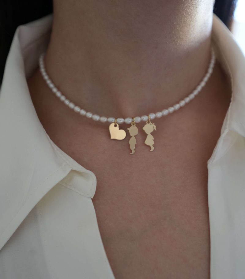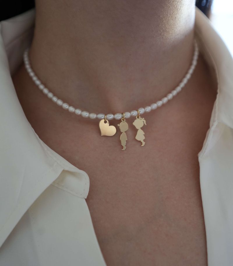 ARGINT 925 Colier perle de cultura inima si 2 copii la alegere