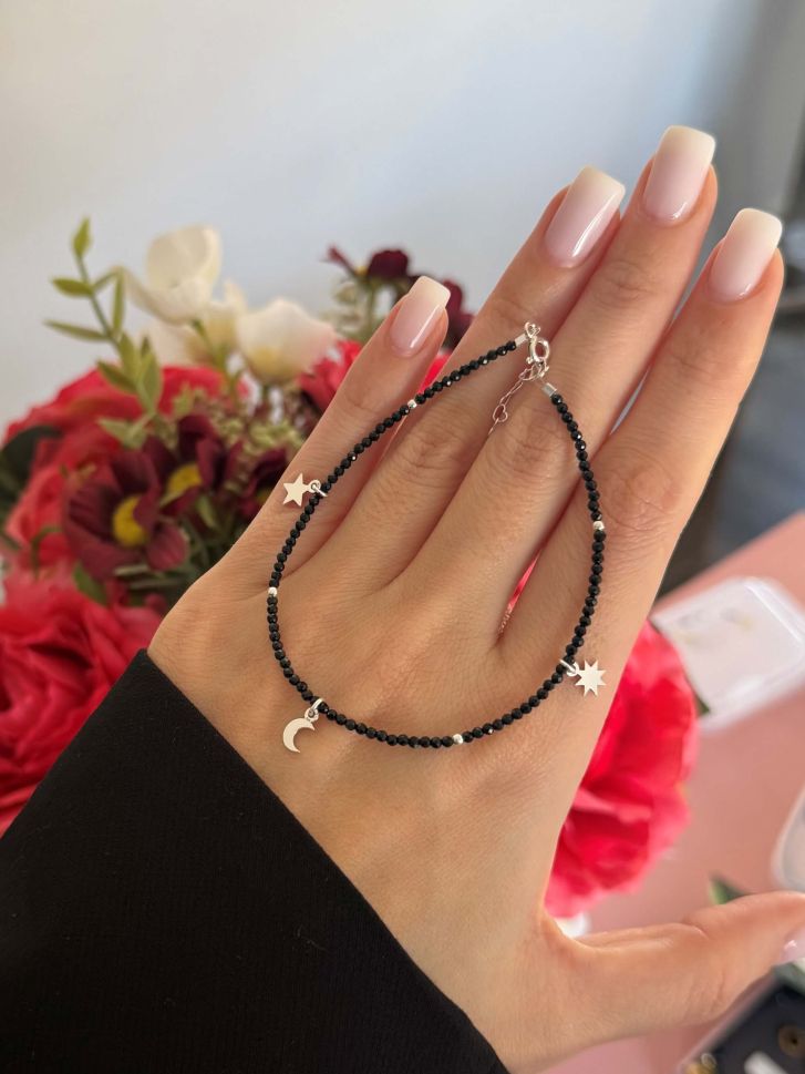 MATERIAL: argint 925, spinel natural. Bratara este insirata pe fir transparent din nailon.