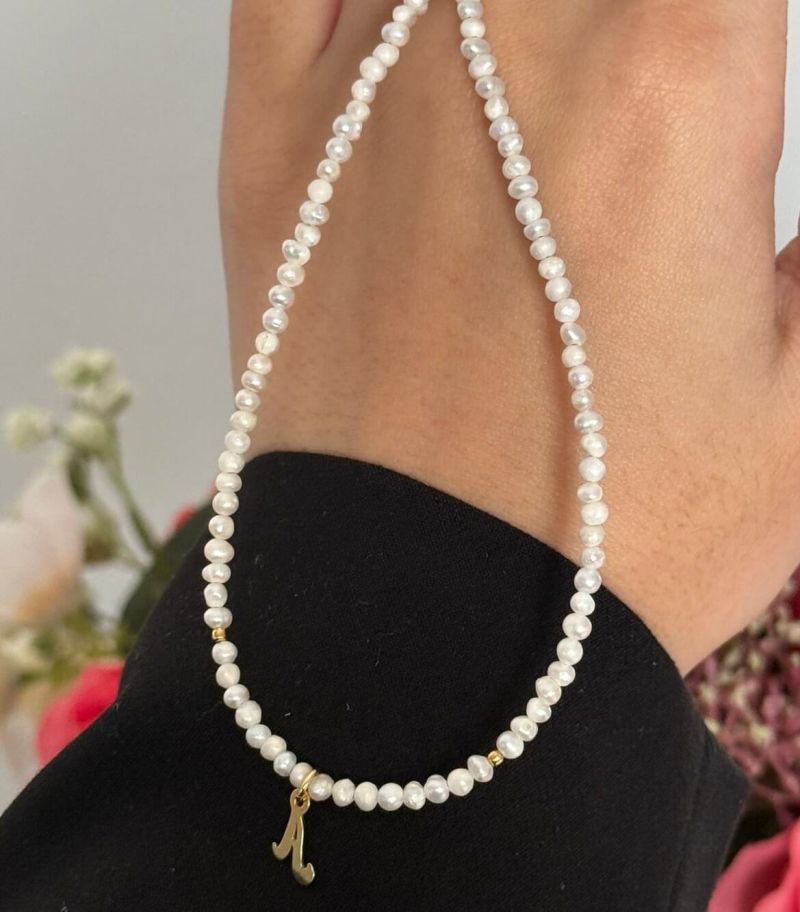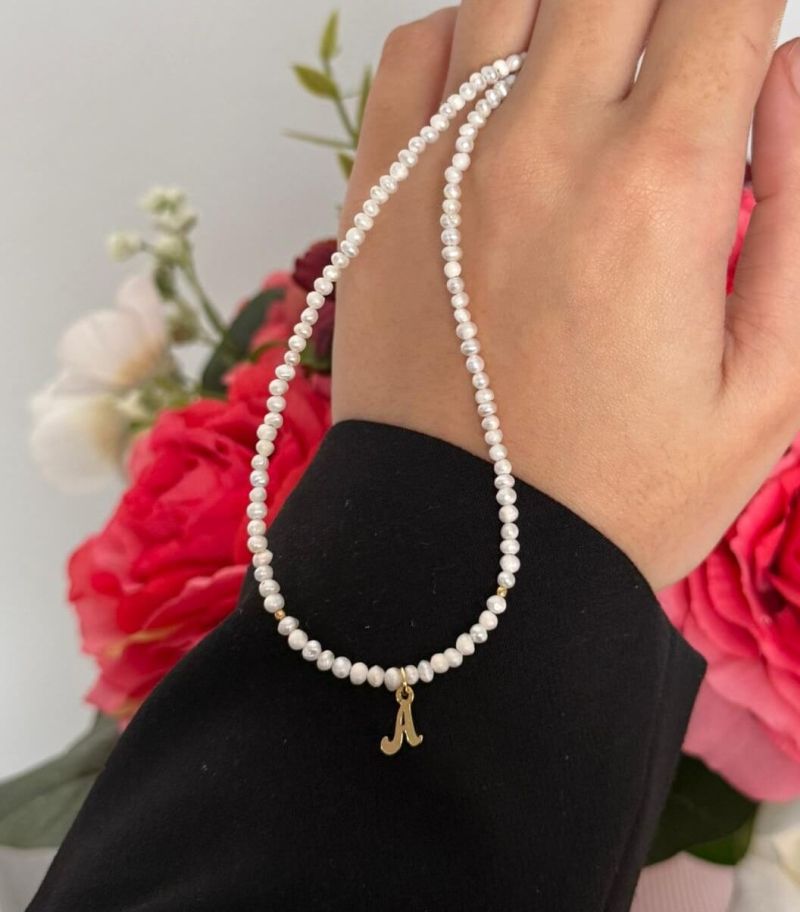 ARGINT 925 - Colier perle de cultura si initiala A
