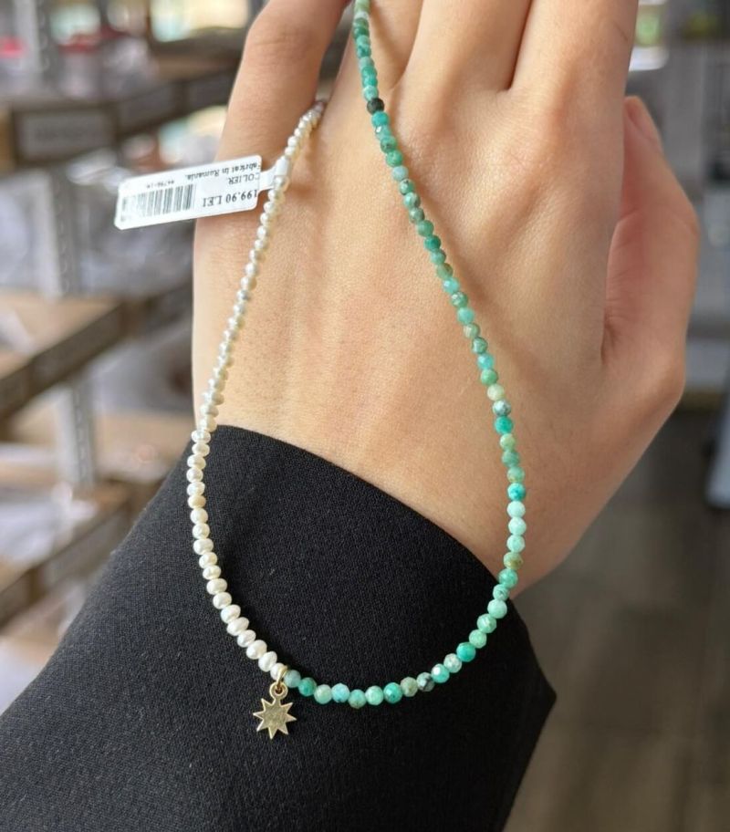 ARGINT 925 - Colier perle de cultura si amazonit natural