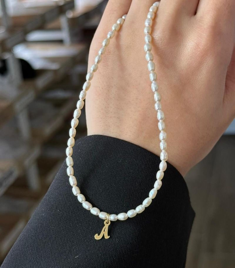 ARGINT 925 - Colier perle de cultura si initiala A