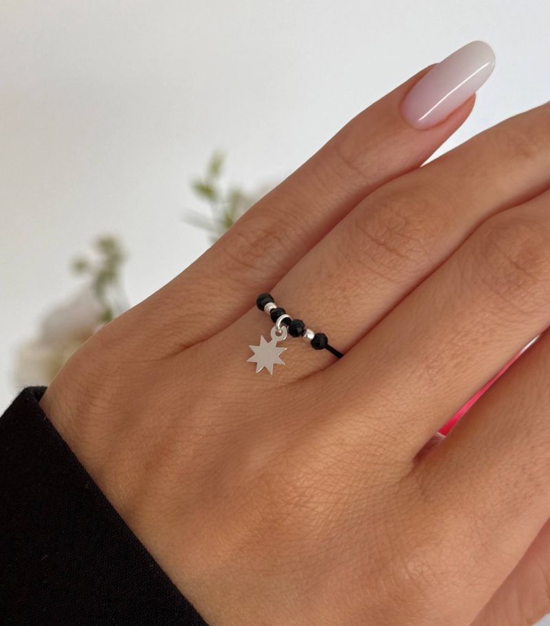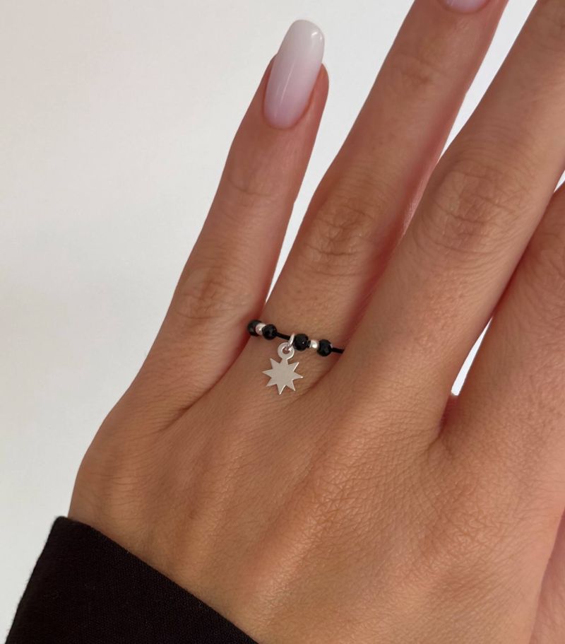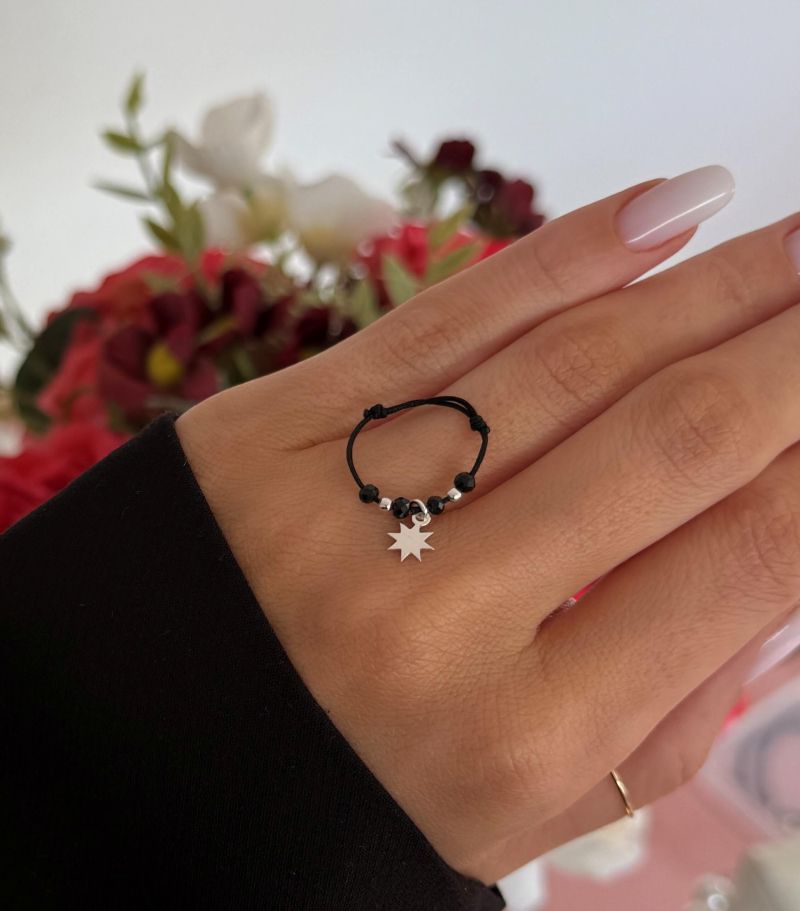 MATERIAL: Pandativ & bile sunt din argint 925. Snur textil (inelul are 2 noduri si le reglati pe degetul dvs). Spinel natural.