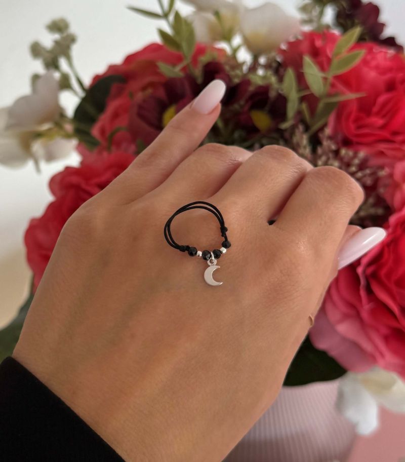 MATERIAL: Pandativ & bile sunt din argint 925. Snur textil (inelul are 2 noduri si le reglati pe degetul dvs). Spinel natural.